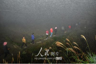 新娘之所以“不落夫家”,一是仍要報答父母的養(yǎng)育之恩;二是舍不得童年伙伴,還要回到寨子里與伙伴們伴做伴,最長可達(dá)三年之久;直到同伴都有了對象才分散,新娘方到新郎家長住下去,這樣的奇趣婚俗也在黔東南的一些侗族地區(qū)一直得以保存下來。圖為11月17日凌晨,新郎家派來的娶親隊伍點著火把前來娶親。