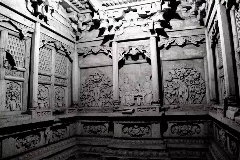 中國磚雕是由東周瓦當(dāng)、空心磚和漢代畫像磚發(fā)展而來的。漢代畫像磚是墓室預(yù)制構(gòu)件的大型空心磚,它是在濕的泥坯上用印模捺印各種圖像。北宋時(shí)形成磚雕,成為墓室壁面的裝飾品。在河南、山西、甘肅等地發(fā)掘的北宋墓室,三面墻壁均以磚雕貼砌而成。墓室內(nèi)的磚雕數(shù)量、質(zhì)量以及所選用的題材,都取決于墓室主人的社會地位。常見的題材有墓室主人夫婦對坐、男仆托盤、侍女執(zhí)壺等,再現(xiàn)了墓室主人生前的生活情景。金代,墓室磚雕的內(nèi)容更加豐富,技藝也有所提高。