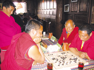 無(wú)論如何,藏棋是流傳下來(lái)了。過(guò)去,藏棋一般是在藏族上層貴族間流傳,之后也傳入了周邊尼泊爾、錫金、不丹等國(guó)。據(jù)說(shuō)1958年錫金王子去日本訪問(wèn)時(shí),曾與日本圍棋高手對(duì)弈一種規(guī)則奇特的圍棋,棋盤(pán)也是自帶的,引起了日本棋壇的驚異,而這位錫金王子說(shuō)是學(xué)自西藏僧人。這種奇特的圍棋應(yīng)該就是藏棋。