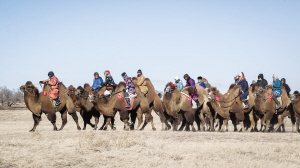 牧民們?cè)谶M(jìn)行賽駱駝。 管永新攝影