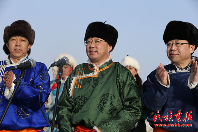 錫林郭勒盟委副書記、行署盟長(zhǎng)霍照良(中)宣布那達(dá)慕開幕
