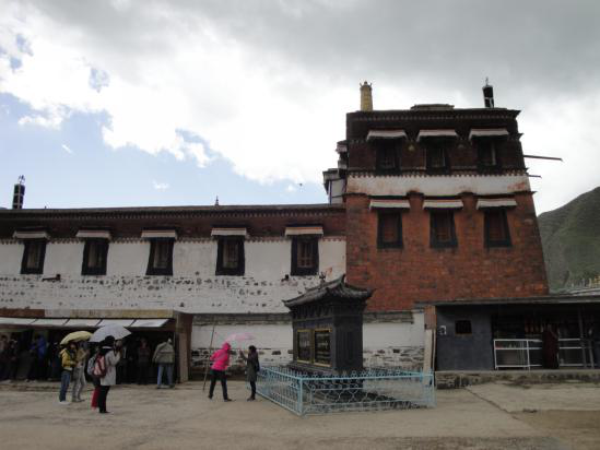 在狹長的盆地上,各式建筑星羅棋布,金瓦紅墻,雕梁畫棟,華麗非凡。僅圍墻就長達(dá)3公里余。五百多間連續(xù)回廊及一千多個“嘛呢轱轆”,將寺院與外界隔絕。整個寺院外部墻垣、院地、臺階均以石砌為主,內(nèi)部戶限、柵欄、棟梁、門栓均以木料為主,故有“寺院外不見木,內(nèi)不見石”的說法。