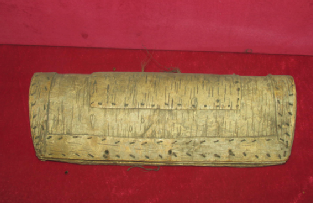 鄂倫春族素有“白樺民族”之稱,白樺樹皮制品種類非常多,大到可以乘人載物的樺皮船、圍蓋“仙人柱”的“鐵克沙”,小到可以裝在衣兜里的煙盒和含在口中的狍哨,提水用的桶、采集用的簍、裝物用的箱、盛飯用的盆、吃飯用的碗、喝酒用的蠱等等。樺樹皮制品的裝飾圖案可以通過壓劃、壓?。c刺)、剔刻、烙燙、補花、繪畫等多種方法形成。壓印點刺是最常用的裝飾手段,工具是用獸骨制成的,分單齒、雙齒、多齒和簡單幾何形幾種。先在剪裁好的器物材料上,用壓、打等方法點刺出裝飾紋樣,再縫合成器物成品。這種裝飾多為素面凹形花紋,顯得樸實單純,而且器物越陳舊樺皮顏色越深,越有光澤,圖紋越清晰。也有人在壓打線上著色,這便形成了另一種風格,美觀艷麗而且突出了物象特征。
