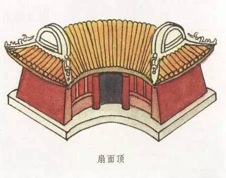 扇面頂和萬字頂一樣,是一種非常別致的屋頂形式,扇面頂顧名思義,就是扇面形狀的屋頂形式,其最大特點就是前后檐線呈弧形,弧線一般是前短后長,即建筑的后檐大于前檐。建筑的西山墻的墻線若向內(nèi)延伸,可以交于一點,而這一點就是扇形的扇子柄端。扇面頂?shù)膬啥丝梢宰龀尚?、懸山,也可做成卷棚形式。扇面頂一般都用在形體較小的建筑中,會讓建筑看起來更為小巧可愛。