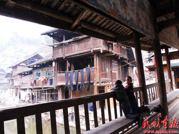 有一首詩里這樣寫到吊腳樓:“從未選擇地利/面壁潛心修行/我們/定格成永恒的姿勢/我們從遠方流浪而來/一路的風餐露宿/疲憊的愿望使得我們/不再是行蹤不定的候鳥/既然是鳥/我們得筑巢壘窩/來隔絕風雨/隔絕世俗/并把房子想象得很溫暖/眼光可以不要越過山巔/眼下/一茬茬的莊稼/一茬茬的孩子/在陽光下拔節(jié)生長/廊上掛滿金色的禾把/屋里添置了過冬的新衣和棉胎/整個季節(jié)/吊腳樓就踏實多了。”