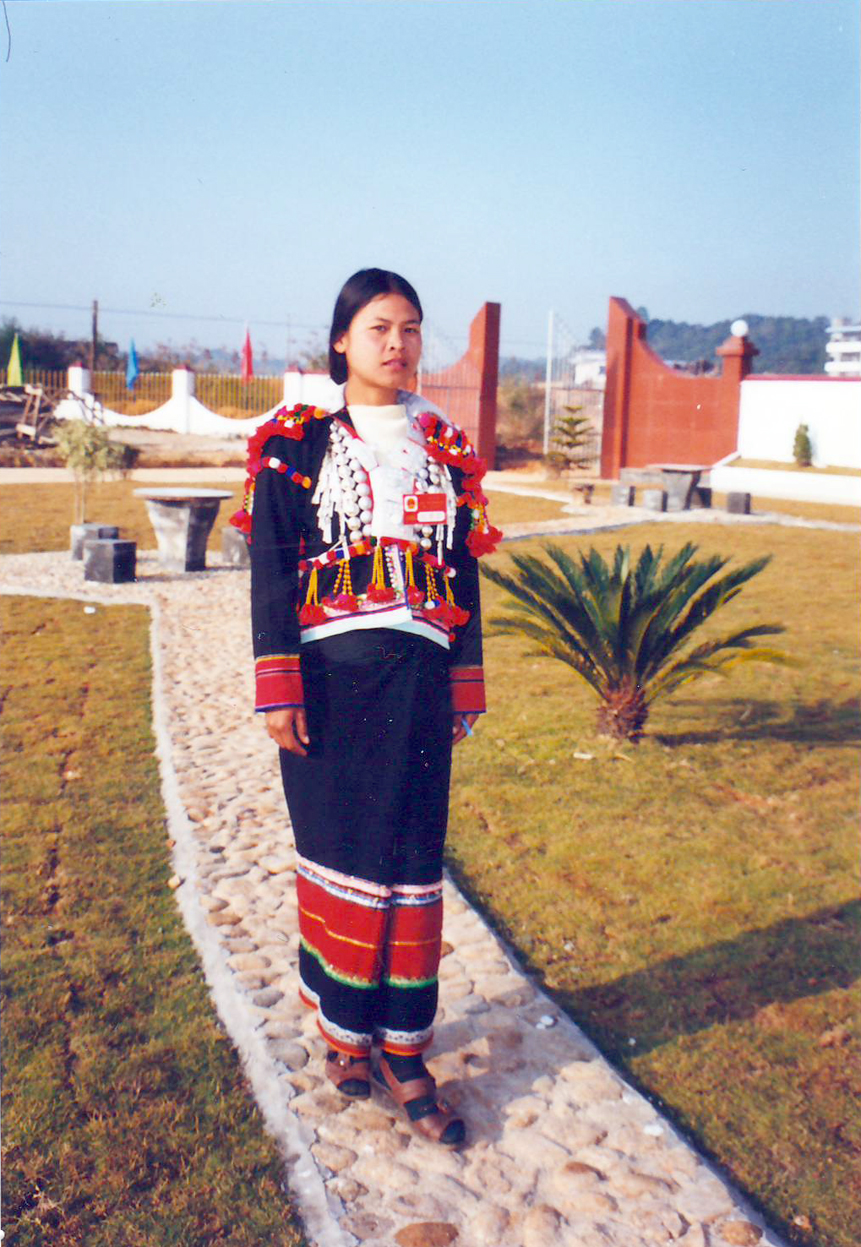 德昂族青年男女結(jié)婚前,都要先舉行認(rèn)親儀式。屆時,男方的親戚如舅父、叔伯等陪同男青年到女方家,用帶去的酒肉糖茶等熱情地宴請女方家人,并分別贈送禮品給女方家庭成員。認(rèn)親過后,女方就請卜卦人選定吉利的日子作為婚期,然后再通知男方家。男方要將彩禮于結(jié)婚前送達(dá)女方家(圖為德昂族女青年,1994)。
