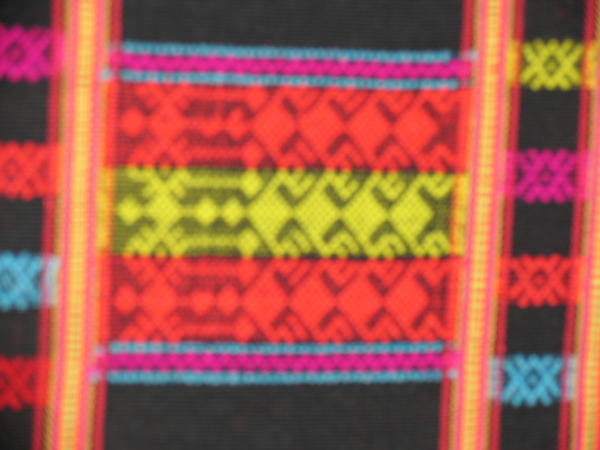 從龍被的圖案中,我們可以辨別出它是屬于哪個(gè)年代的作品。早期的圖案多為人形紋和鬼紋(人的靈魂),這兩種圖案實(shí)際上都是一樣的,是由色彩的明暗來區(qū)分的,明的是人形紋,暗的是鬼紋。后來的龍被,因受漢族文化的影響,圖案也逐漸漢化了。因此,后期的龍被,織物和部分圖案保留黎族文化,而刺繡的花紋圖案都是漢文化的。