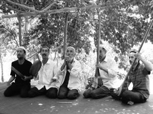 夏季的喀什,空氣中涌動著濕潤的氣息。這個玉石一般潤滑的綠洲一派生機。在老城夯土滄桑的背影中,一陣憂傷的琴聲在城市上空回蕩,古老的《十二木卡姆》剎那間奏響耳邊?;匚吨鴦偛诺那俾?,感覺就是它——沙它爾,只有它的憂傷才會讓木卡姆如此動人心弦。