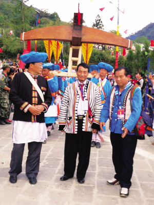 一場(chǎng)盛大的傈僳族節(jié)日聚會(huì),背后的弩弓形象顯而易見。