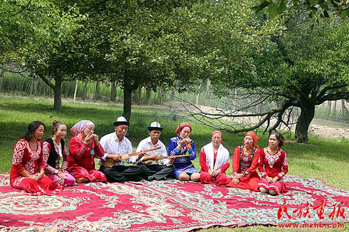 據(jù)色帕巴依鄉(xiāng)黨委委員阿依木古麗·艾山卡德介紹,該鄉(xiāng)在鄉(xiāng)中心小學專門開設課程教學生學彈庫姆孜琴,并積極舉辦“我為庫姆孜代言”活動,積極培養(yǎng)庫姆孜傳承人。此外,鄉(xiāng)里還專門組建有庫姆孜彈唱隊?!拔覀兝冒偃瘴幕瘡V場和日常的演出走村串巷,積極參加縣宣傳部開展的各項文體活動。今年2月開展的群眾大會,把庫姆孜音樂重新填詞,配合惠民政策宣傳,將傳播民族文化與群眾思想政治工作相結合。”同樣,在烏恰縣吾合沙魯鄉(xiāng)恰提村,當?shù)伛v村工作隊積極組織20名返鄉(xiāng)學生開辦“庫姆孜彈唱文藝培訓班”,廣泛調動返鄉(xiāng)大學生加入到文化傳承的行列中。