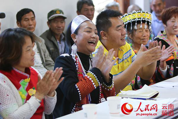 宣講現(xiàn)場(chǎng),百姓們不時(shí)打斷楊娜的話,詢問(wèn)自己關(guān)心的問(wèn)題。十九大代表?xiàng)钅仁瞧斩形髅丝h民族文化工作隊(duì)的一名隊(duì)員,開(kāi)完十九大回到西盟后,她就一直在想,該用什么樣的方式才能把在北京看到的、聽(tīng)到的、感受到的“十九大”傳遞給父老鄉(xiāng)親。
