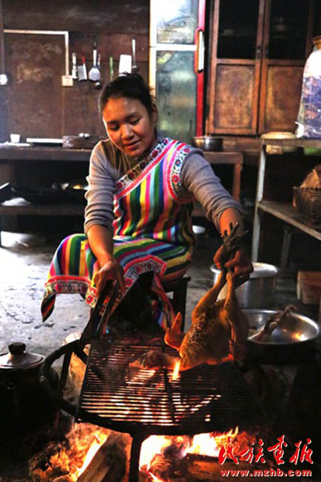 火燒獨龍雞是獨龍族人逢年過節(jié)團(tuán)圓飯不可缺少的一道特色菜(余金成 攝影)