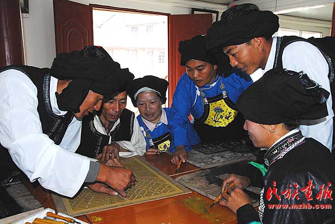 以前很長一段時間,沒幾個人留意過阿峨新寨村的繡花技藝。然而,有一次,縣里組織文化館的專家到峨新寨采風(fēng),老師們發(fā)現(xiàn)村民們的這門技藝后非常高興,于是,就發(fā)動村民在阿峨新寨村搞起了版畫,這使阿峨農(nóng)民版畫逐漸發(fā)展壯大。1966年,村里的群眾投工投勞蓋起了一幢一樓一底土木結(jié)構(gòu)的文化活動室,組織文藝演出、開展繪畫活動、圖書閱覽、電影放映、籃球比賽等活動。以前,村民們有事沒事就聚在一起打牌、喝酒、猜拳,精神文化生活比較單調(diào),就連圖書室里的報刊、圖書也成了擺設(shè),無人光顧。 但自從村里搞起版畫事業(yè)后,阿峨新寨村的面貌發(fā)生了翻天覆地的變化?!艾F(xiàn)在的阿峨新寨,處處都是新氣象,版畫成為整個寨子的一項重要經(jīng)濟(jì)來源,人均純收入已翻了一番,村民的日子也越過越紅火。”阿峨新寨村黨支書龍子定說?!艾F(xiàn)如今我們徹底甩掉了貧困村的帽子。” 盧正林滿臉笑容地說:“我們版畫村能有今天的成就,離不開好政策?!?/p>