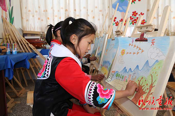 臘灣民族小學二年級的學生在上美術(shù)課