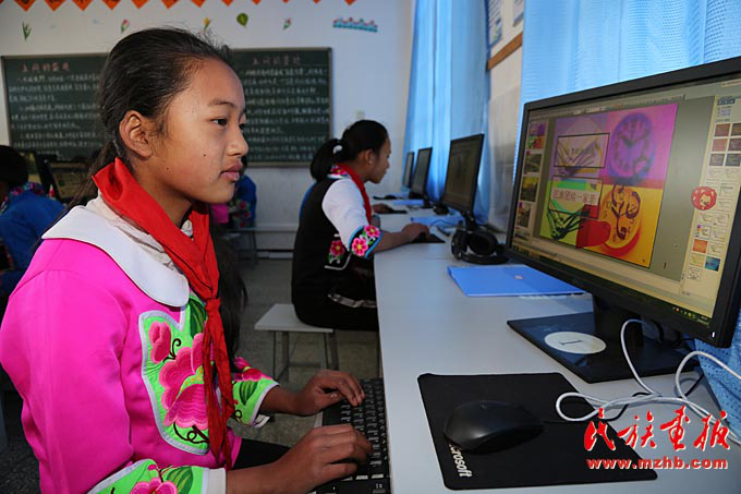 臘灣民族小學五年級的學生在上計算機課,李欣潔同學在認真地制作PPT