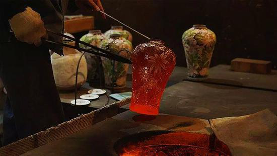 “寶瓶如花放光彩,全憑巧手把花栽,不得白芨花不開(kāi),不經(jīng)八卦蝶難來(lái),不受水浸石磨苦,哪能留得春常在?!薄@首民謠惟妙惟肖地唱出了景泰藍(lán)制作過(guò)程的繁復(fù)與艱深。