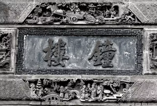 磚雕指在青磚上雕出山水、花卉、人物等圖案,是古建筑雕刻中很重要的一種藝術形式。