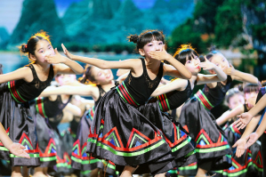 北京市門頭溝區(qū)大峪二小的學(xué)生們表演的瑤族舞蹈。 娘吉加攝