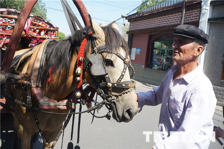 走在古巷中,你會聽到駕駛“哈迪克”(馬車)的維吾爾族老人的吆喝聲。招招手打個“馬的”,在嗒嗒的馬蹄聲和叮咚悅耳的馬鈴聲中,穿梭在一條條曲徑通幽的小路間,一路前往獨具特色的庭院和百年民居。每一條街道風情各異,每一條小巷曲折有致,仿佛走進了一座建筑博物館。圖為駕駛“哈迪克”的老人。