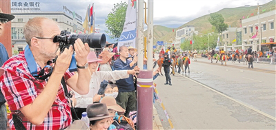 2017年7月24日下午,一場名為“瀟灑的康巴人”玉樹風情巡游在玉樹藏族自治州州府玉樹市街頭上演。來自玉樹州一市五縣的康巴藏族兒女或馭駿馬、或盛裝、或歌舞,以行走巡游的方式展示當?shù)鬲毦咛厣拿褡迕袼孜幕8骺h巡游隊伍從感恩廣場出發(fā),途徑結古大道、民主路,最終到達玉樹軍分區(qū),沿途圍滿了觀看的群眾和游客,據(jù)悉,此次巡演在玉樹州尚屬首次。