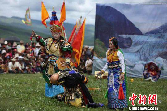 圖為掛牌儀式現場上演藏戲《格薩爾王傳》 鐘欣 攝