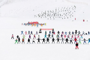 人們在阿勒泰市將軍山滑雪場參加慶?;顒印?/span>