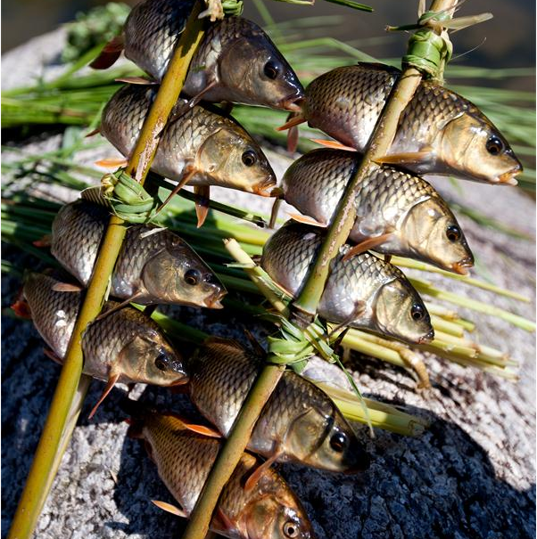 說(shuō)起燒魚(yú),得從古代人類祖先燒肉燒魚(yú)談起。苗族先輩們?cè)陂L(zhǎng)期的遷徙跋涉中,或到西南方向的崇山峻嶺定居后,都要到山下水塘、溪流中捕捉蛙魚(yú)來(lái)充饑,維持生活。由于沒(méi)有鍋頭和碗具,只能燃燒篝火紅炭來(lái)燒烤蛙、魚(yú)至熟,然后上山采摘蕉葉、芒草來(lái)墊盛,大家圍攏在一起一同享用,久而久之便形成了野炊燒魚(yú)的習(xí)慣,一直流傳至今。