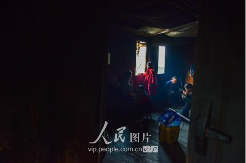 一般要到快過春節(jié)的時候,男方家才專門請人去接女方來洗糯米、打糍粑,新娘方能在夫家住上一夜;在來年農(nóng)忙時節(jié),又接女方來幫忙,夜里仍不能在男方家留宿,幫完忙當晚即回去,只有待到女方有身孕后,新娘才到夫家長住。圖為11月16日夜,新娘潘芝銀家為準備婚禮,燈火徹夜長明。