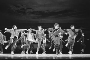 《我們看見了鴻雁》既表達(dá)了“深扎”精神對藝術(shù)創(chuàng)作的重要性,也反映了青年舞蹈工作者的精神傳承?!傍櫻恪笔邱{鶴歸去的賈作光,也是活在當(dāng)下城市中的青年人。他們雖然不穿蒙古袍、不踩蒙古靴,但他們的心靈深受民族文化的熏陶,印刻著永不褪色的文化記憶。他們走在新時代遼闊的天地間,步伐穩(wěn)健,心有藍(lán)天。