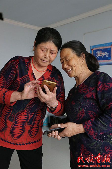 莎仁其其格(左)通過“國(guó)家的孩子”微信群和朋友保持密切聯(lián)系。