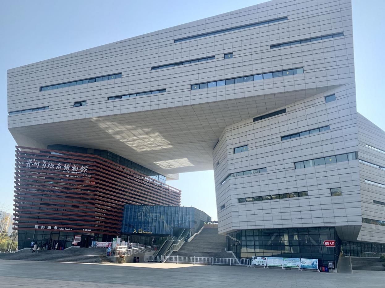 貴州地質博物館外景:融合了貴州梵凈山“蘑菇石”、沉積巖地層等地質元素,曾獲2020年中國建筑工程“魯班獎”