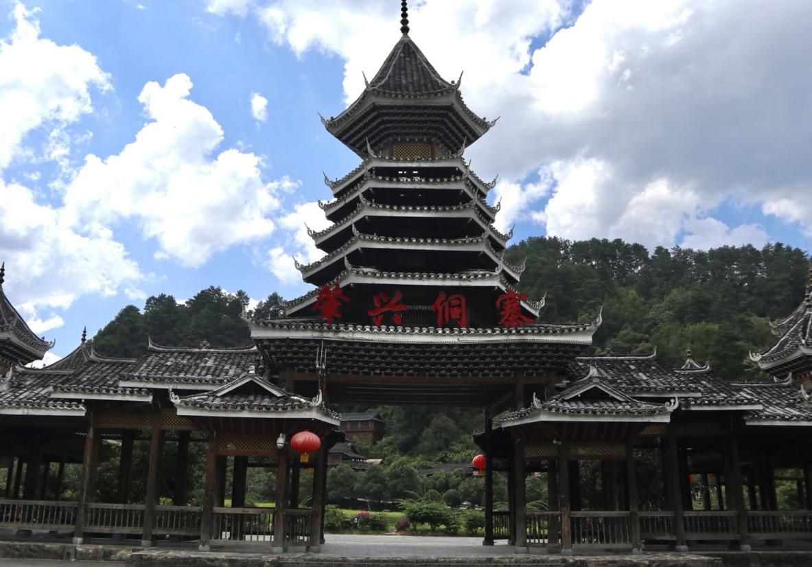 寨門是建在侗寨村寨入口處的門闕式建筑,是侗寨邊界區(qū)分的標(biāo)識。古時(shí)具有關(guān)防作用,守衛(wèi)村寨的安全?,F(xiàn)代除裝飾侗寨外,寨門還作為節(jié)慶期間迎賓送客的場所。