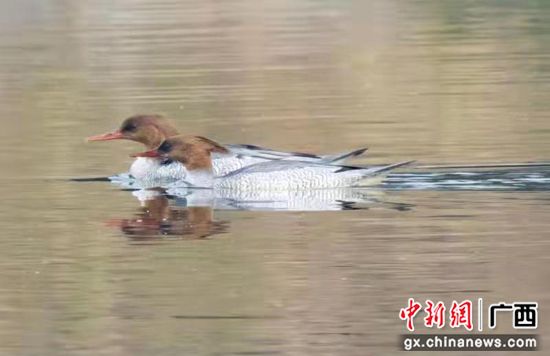 廣西荔浦市荔江流域首次發(fā)現(xiàn)國家一級保護動物:中華秋沙鴨。張德林 攝