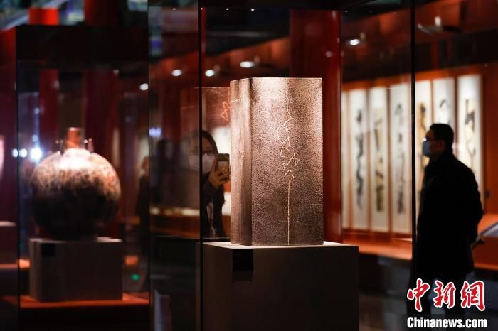 此次展覽是繼2019年“韓美林生肖藝術(shù)大展”之后,韓美林藝術(shù)第二次進故宮展覽。歷經(jīng)數(shù)十年,韓美林從散落多地的甲骨、石刻、巖畫、古陶、青銅、陶器、磚銘、石鼓等歷代文物上,搜尋記錄了數(shù)萬個古文字符號,又耗時數(shù)年將這些歷史文化遺存匯集成“天書”。古文字的神秘、歷史的曠遠、書法的韻致,以及藝術(shù)家的才情,融會貫通于一體。