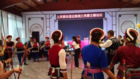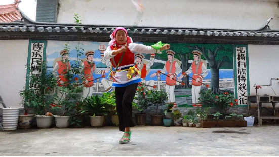 傳統(tǒng)文化時時學,白族舞蹈代代傳。小小的霸王鞭看似簡單,里面卻包含了白族人民田間勞作的智慧。用自己的努力,言傳身教地教授霸王鞭,這愚公移山般的精神也是傳承人的智慧。“今天下午6點,我還要去江尾一趟,教他們的繞三靈團隊跳霸王鞭”,何松康說。
