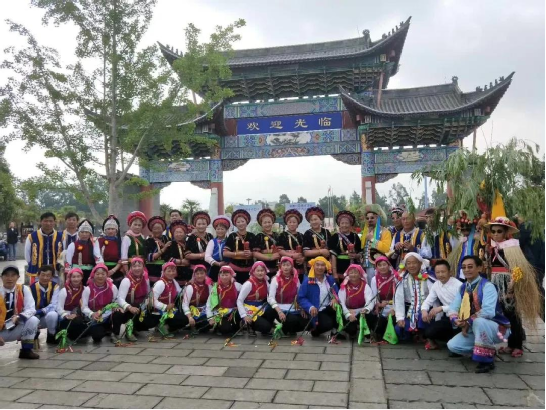 2017到2019年的連續(xù)三年,云南民族村都邀請何松康師徒們到昆明演出,一年兩次。霸王鞭的亮相得到了云南民族村園方及游客的一致好評,舞隊的付出得獲得了回報,大家學好跳好霸王鞭的熱情更高漲了。
