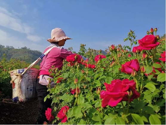 2019年,阿舍鄉(xiāng)斗南村成立清香玫瑰合作社,通過土地流轉種植玫瑰105畝,主要種植金邊玫瑰、墨紅玫瑰、藍蝴蝶等品種。通過幾年的發(fā)展,斗南村的玫瑰花茶已經(jīng)形成“種植、加工、銷售”為一體的產(chǎn)業(yè)化發(fā)展模式,每年帶動就業(yè)200多人,戶均增收1萬多元。