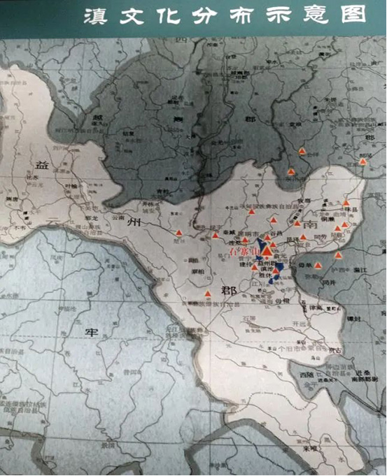 西漢設(shè)置益州郡示意圖。(翻拍自云南省博物館滇文化分布示意圖,齊子通 攝影)