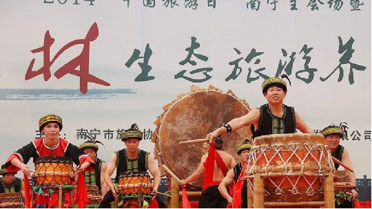 上林縣瑤族鼓樂,原汁原味,鼓點雖然簡單,卻具有原生態(tài)的民族特色。后經(jīng)藍卓寶、藍連榮、盧成、盧飛燕等學者挖掘整理,2010年開始籌備瑤鼓樂,2011將具有上林瑤族鼓樂特色的“瑤山鼓”搬上舞臺。
