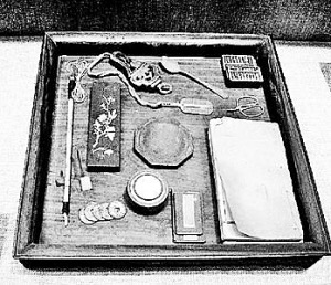 抓周禮所需之物,也已齊備。計有鋼筆、毛筆、筆記本、《古蘭經(jīng)》、木劍、玩具等。明日都將置于桌上,讓小兒任意來抓。全家老小,寄望小兒能抓到一個較理想的物件。因教門中常有人言,如果男孩抓到了筆,將來便是個滿腹詩書的讀書人;如果抱起了《古蘭經(jīng)》,就會是個學(xué)識淵博的虔誠阿訇;如果拿起了劍,就是個好勇尚武的好漢;如果既抓了筆又拿了劍,那將來便是個文武雙全的將才了。母親最為擔(dān)心的,無非是萬一小兒一手抓起玩具,將來只怕要變成好吃懶做之人;萬一小兒什么也不抓,那他將來可就一事無成,一輩子做個庸人了。