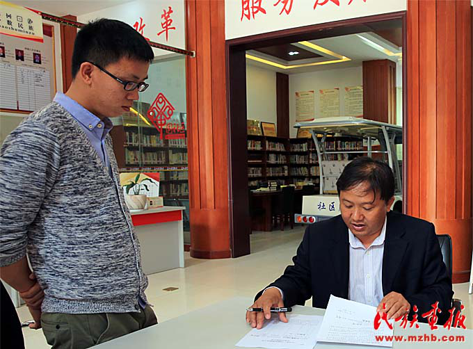 社區(qū)辦事大廳里,黨支部書記現(xiàn)場辦公解決實(shí)際問題