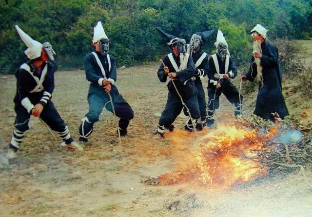 “撮泰吉”是彝語(yǔ)的稱謂,屬于彝族的一種古戲,譯意為“變?nèi)说膽颉?,是彝族重要的原始宗教信仰和民族風(fēng)情習(xí)俗。每當(dāng)春節(jié)期間正月初三至十五和六月二十四至二十六的火把節(jié)期間,貴州最高峰韭菜坪山脈一帶的赫章、威寧彝族同胞就會(huì)演出《撮泰吉》,舉行“掃火星”的驅(qū)邪納吉活動(dòng)儀式,祈求火災(zāi)、瘟疫遠(yuǎn)離人們,讓平安幸福永遠(yuǎn)伴隨彝家。演出的內(nèi)容有祭祀祖先、民族遷徙、拓荒耕種、買賣牲畜、交配繁殖后代等,最后才逐戶為全寨掃除火星。