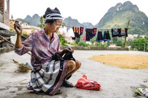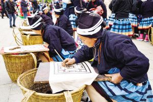 白褲瑤服飾制作需要幾個(gè)月的時(shí)間,經(jīng)過紡紗、織布、描圖、蠟染、刺繡、縫制等30多道工序,其中許多工序都受季節(jié)和天氣變化的影響。