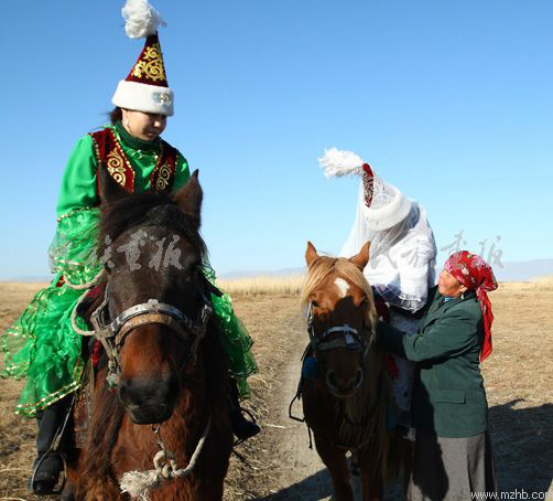 哈薩克族十分重視女子的出嫁,在習慣上不僅把結(jié)婚這件事視為人生頭等大事和雙方家庭的一件大喜事,甚至當做是全部落的大事來操辦。每當遇到隆重的婚禮時,就要舉行大規(guī)模的賽馬、刁羊、姑娘追、摔跤、阿肯彈唱等文娛活動。