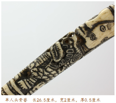 骨簪作為男女定情之“禮物”、亦作為貨幣的等價(jià)物進(jìn)入流通領(lǐng)域,同時(shí)也因其工藝的精湛而作為貴重陪葬品進(jìn)入另一個(gè)世界。這里有社會關(guān)系的締結(jié),也隱喻著生命的綿延。而人形,則暗含與民族歷史換喻性的關(guān)聯(lián),民族的過往可追本溯源,而物被賦予了某種“神性”,亦體現(xiàn)了其文化構(gòu)建者賦予的力量。