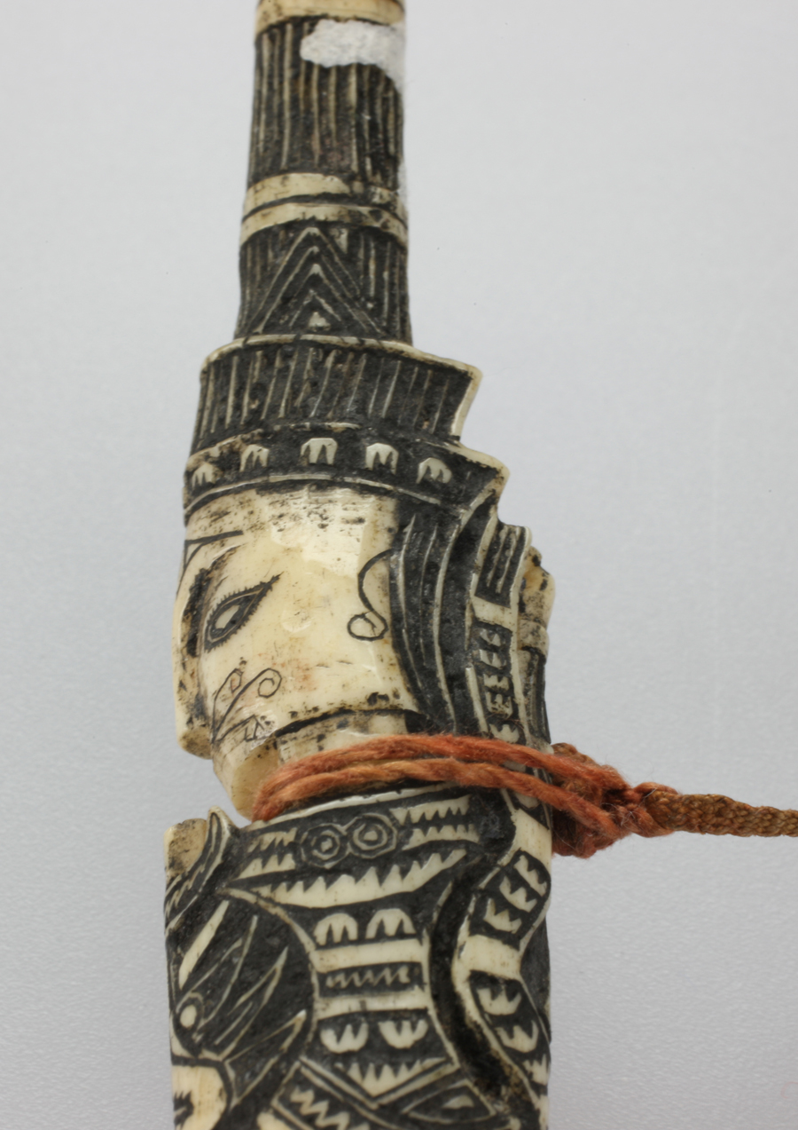 黎族的人形骨簪,就有其獨(dú)樹一幟的風(fēng)格和魅力。黎族,中國最古老的民族之一。據(jù)考證,黎族是從古越的一支——駱越發(fā)展而來,早在3000年前,其先民就在海南島這塊土地上生存繁衍。黎族織錦、骨雕等傳統(tǒng)手工技藝被認(rèn)為承載了其對于生命起源、祖先認(rèn)同、遷徙之路的記憶和想象。作為黎族骨雕藝術(shù)的集大成者——骨簪,則完美呈現(xiàn)了“技”與“意”的結(jié)合。