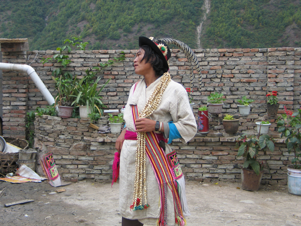 傈僳族男子的服飾各地基本相同、略有區(qū)別,如四川地區(qū)的傈僳男子用黑布包頭,身穿條紋麻布衫褲;云南德宏地區(qū)則頭包黑布,身著無(wú)領(lǐng)、無(wú)扣的有衽麻布長(zhǎng)衫,外罩上灰下黑的小坎肩,前襟無(wú)扣,而怒江地區(qū)的傈僳族一般為黑布或紅布、藍(lán)布包頭,身著麻布長(zhǎng)衫(夏天穿短衫),褲寬大,長(zhǎng)至膝下,上開(kāi)大襟、無(wú)扣,腰系線織布帶等。