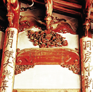 畬族的古老民居都是深宅大院,堂屋高大、寬敞,也是裝飾的重點,神龕、窗欞都有鏤空木雕和浮雕裝飾。堂屋依木柱用木板隔間,板壁上露出半圓的木柱,在對應的木柱上貼著紅紙濃墨的對聯(lián)——每逢新婚、祝壽、春節(jié)等重大節(jié)慶都要貼對聯(lián)。