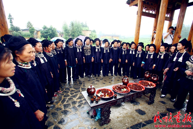 熱情洋溢的水族村寨擺上攔路酒迎接客人 引自民族畫報