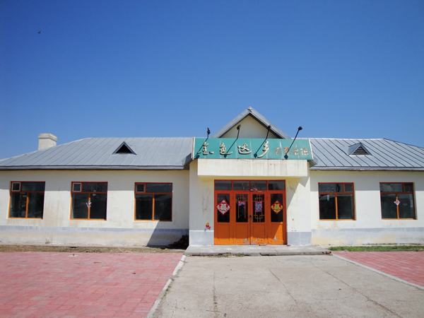 達(dá)斡爾族傳統(tǒng)住房多以松木或樺木棟梁為房架,土坯或土垈為墻,頂苫房草。屯落的格局一般以東西為一條線,排列整齊,形成一條街,每家房屋的東西兩側(cè)和房后一片地為園田,屯中東而和南北間均有道路相通。各戶的院落皆為南北狹長(zhǎng)的院落,分南北兩層院,以中軸線為中心,安排住宅和倉房、畜圈。中軸線北端的里院是住宅,人字形的高大土木結(jié)構(gòu)房,分兩間或三間,南北兩間均有木格結(jié)構(gòu)的窗戶,采光充足,冬暖夏涼。